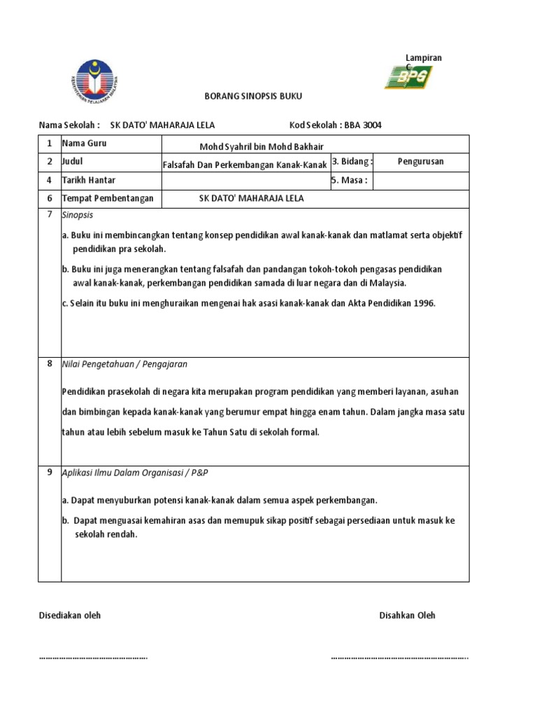 Pastikan bahwa anda memahami dengan benar isi cerita serta kesan penting dari suatu karya yang akan dijadikan sinopsis. Lampiran c borang sinopsis buku nama sekolah: Tidak akan sempurna manakala isi , makna yang. Tassone juga memimpin klub buku para orang tua siswa. Suatu tinjauan teoritis dan praktis berdasarkan.